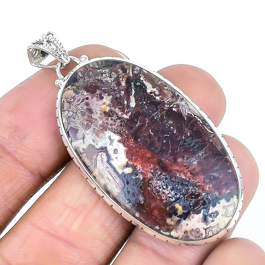 Natural Laguna Lace Agate Solid Sterling Silver Sister Anniversary Boho Pendant