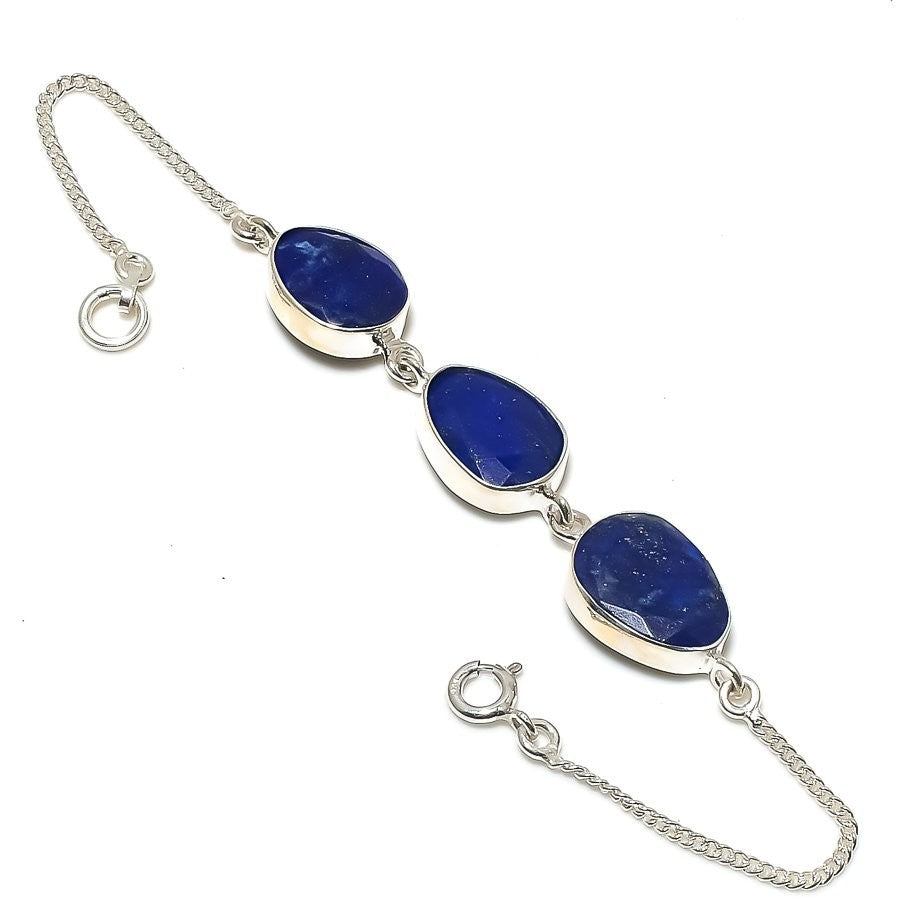 Natural Lapis Lazuli 925 Solid Silver Chain Best Daughters Gift Bracelet Jewelry