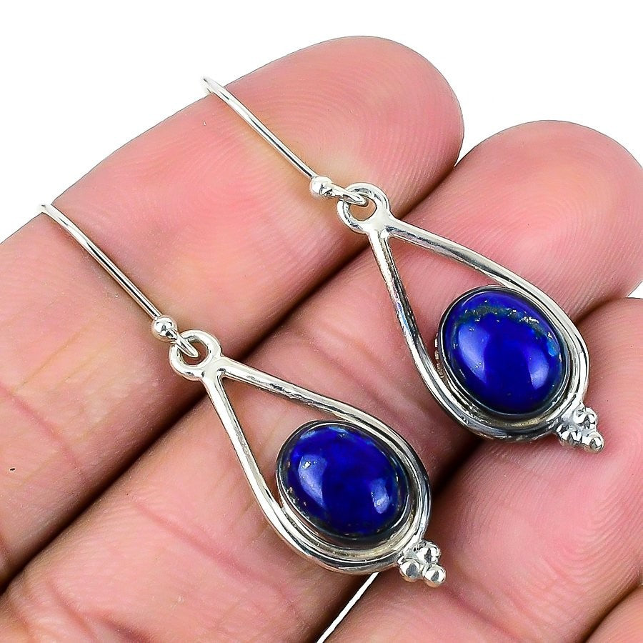 Natural Lapis Lazuli 925 Sterling Silver New Dangling Art Deco Handmade Earrings