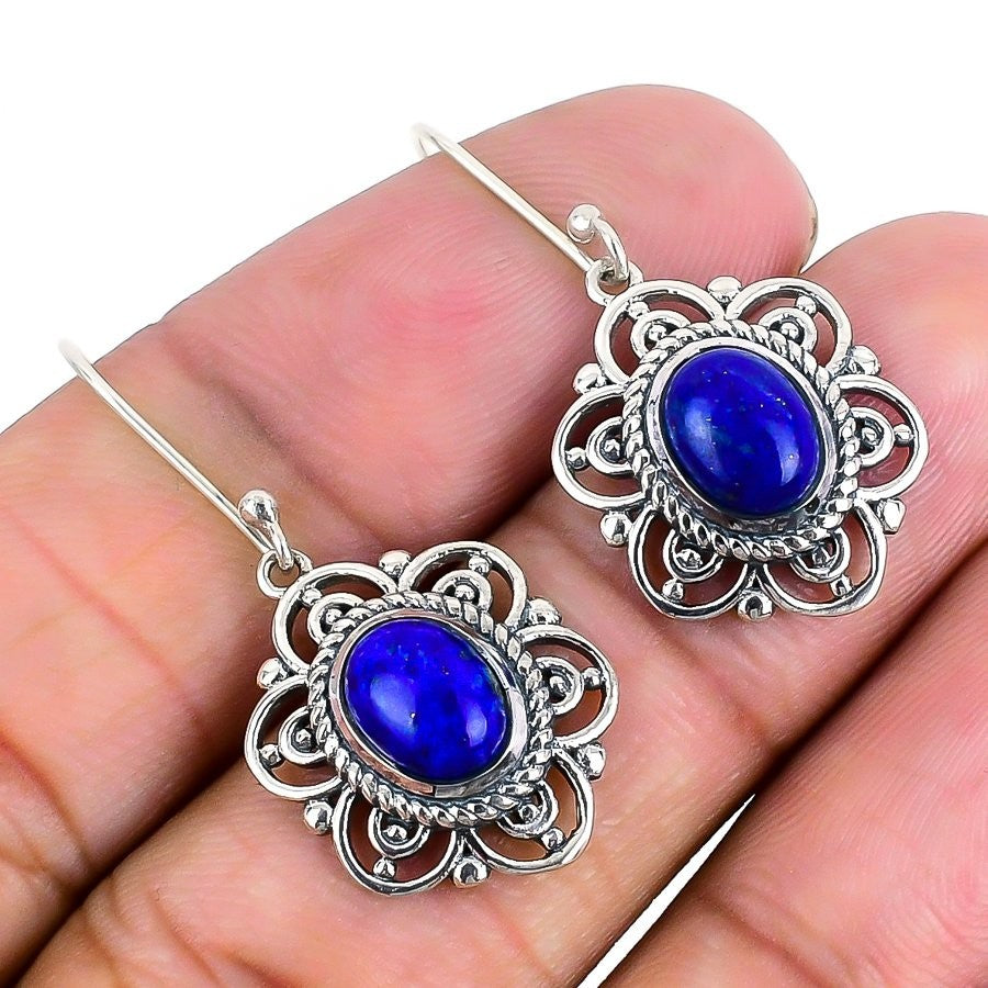 Natural Lapis Lazuli September Dangle Best Daughters Gift Earrings Solid Silver