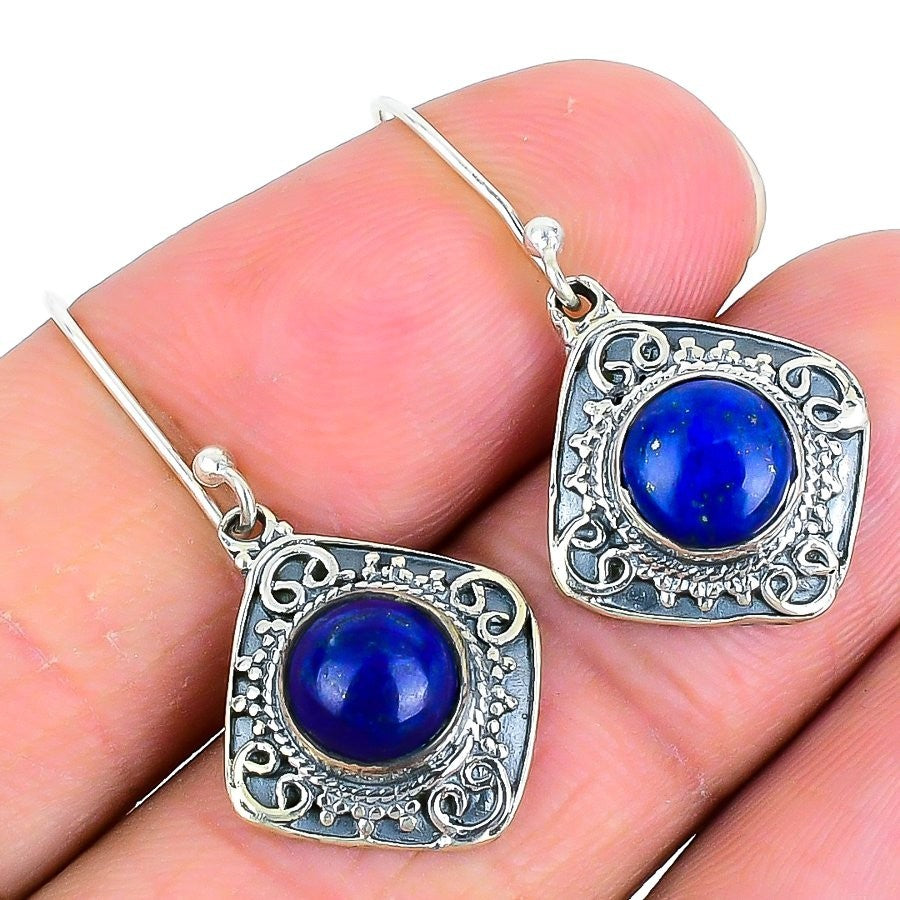 Natural Lapis Lazuli Sterling Silver Hook Drop Dangle Daughter Bezel Earrings