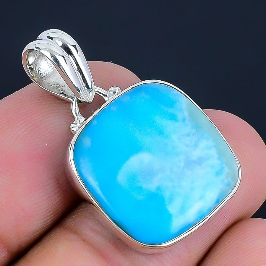 Natural Larimar Bezel Handcrafted Unique Daughter Gift Pendant 925 Solid Silver