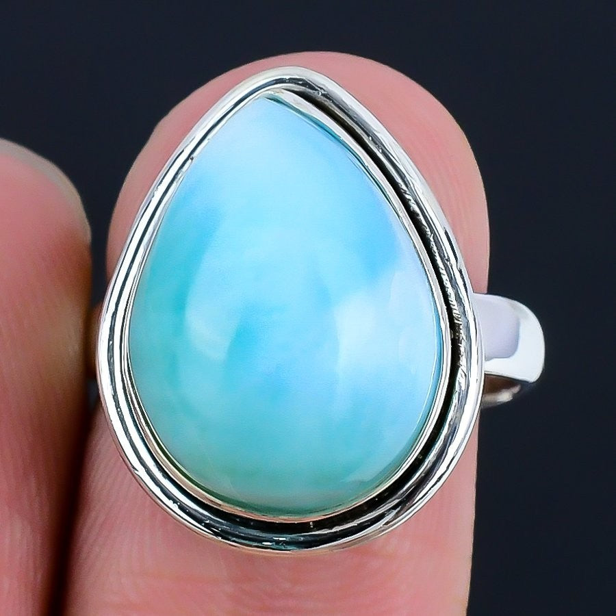 Natural Larimar New Statement Best Daughters Gift Ring Size 7.5 925 Solid Silver