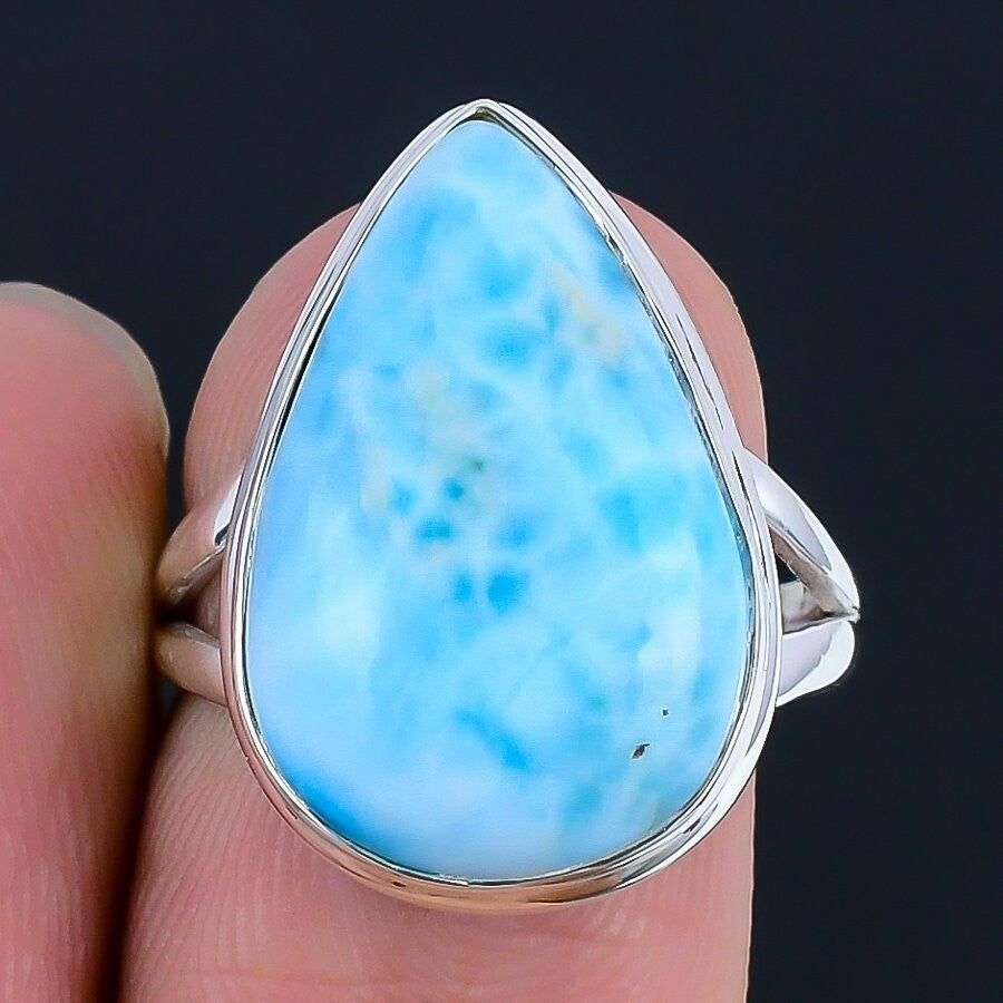 Natural Larimar Solid Sterling Silver Bezel New Statement Engagement Ring Size 7
