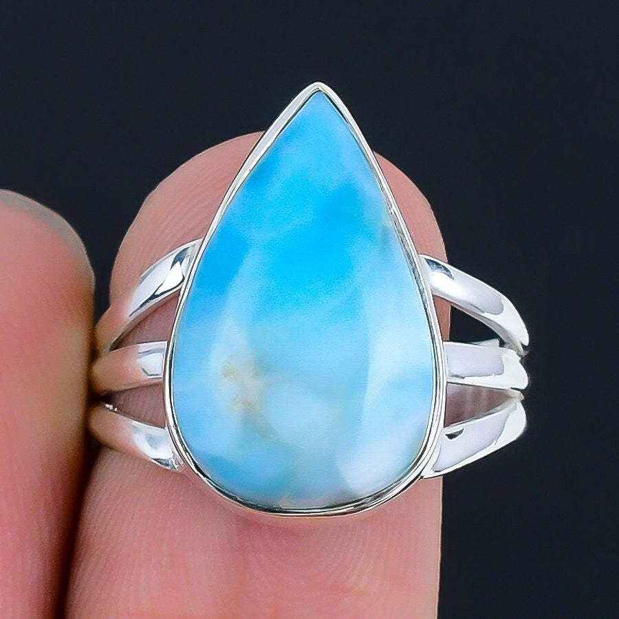 Natural Larimar Solid Sterling Silver Sister Statement Bezel Ring Jewelry Size 9
