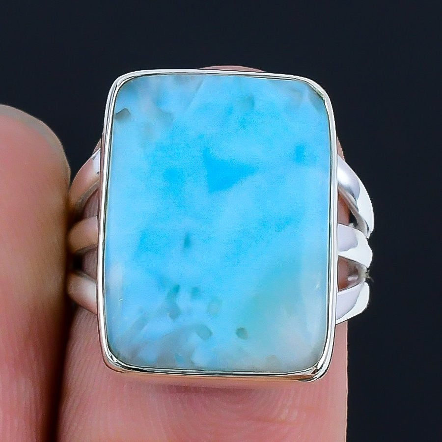 Natural Larimar Statement Bezel Artisan Ring Jewelry Solid Sterling Silver US 6