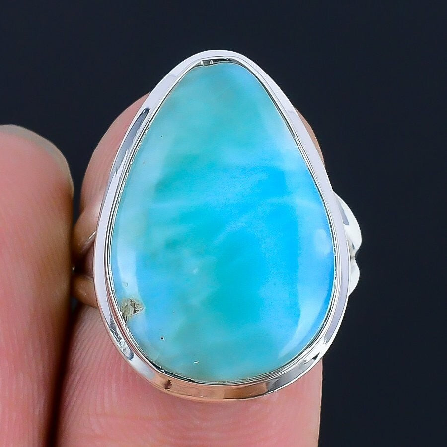 Natural Larimar Sterling Silver Daughter Statement Ethnic Boho Ring Jewelry US 7