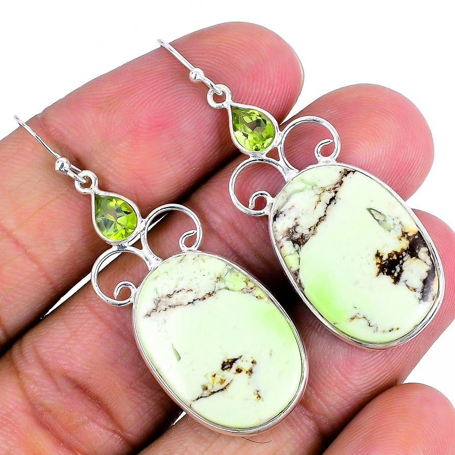 Natural Lemon Chrysoprase Boho Dangle Drop Hook Earrings Jewelry Solid Silver