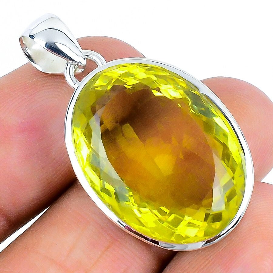 Natural Lemon Topaz 925 Sterling Silver Handcrafted Wedding Wife Pendant Jewelry