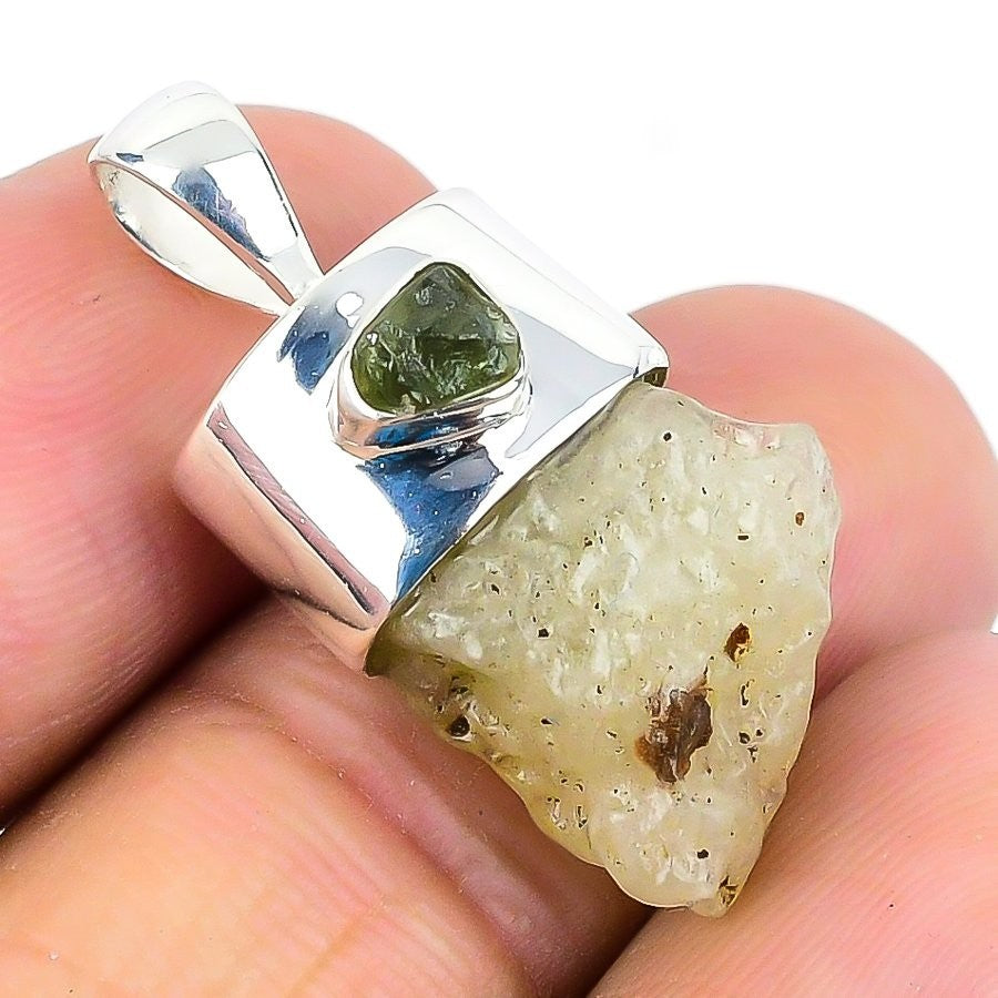 Natural Libyan Glass 925 Silver Sister Wedding Handcrafted Trendy Ethnic Pendant