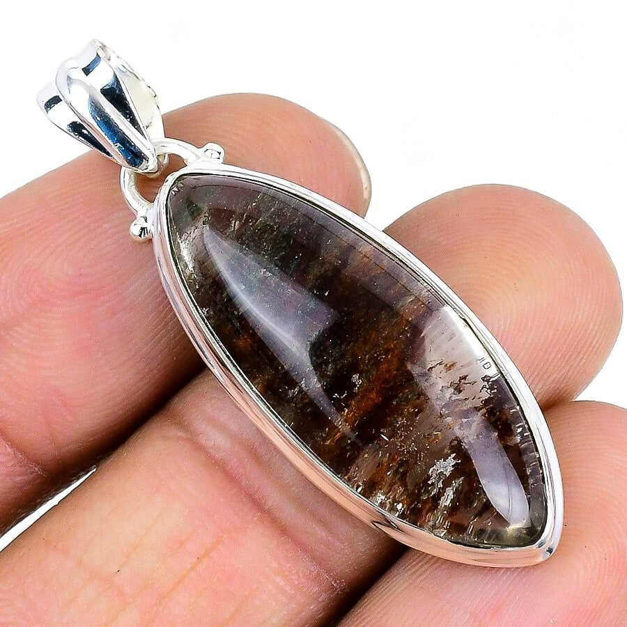 Natural Lodolite Garden Quartz 925 Sterling Silver Bezel Wedding Pendant Jewelry
