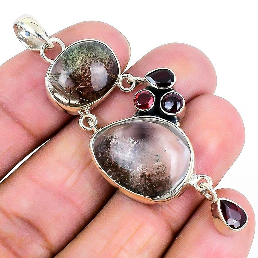 Natural Lodolite Quartz 925 Silver Channel Set Daughter New Boho Pendant Jewelry