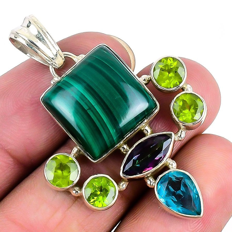 Natural Malachite 925 Silver Anniversary Handmade Mother Artisan Pendant Jewelry