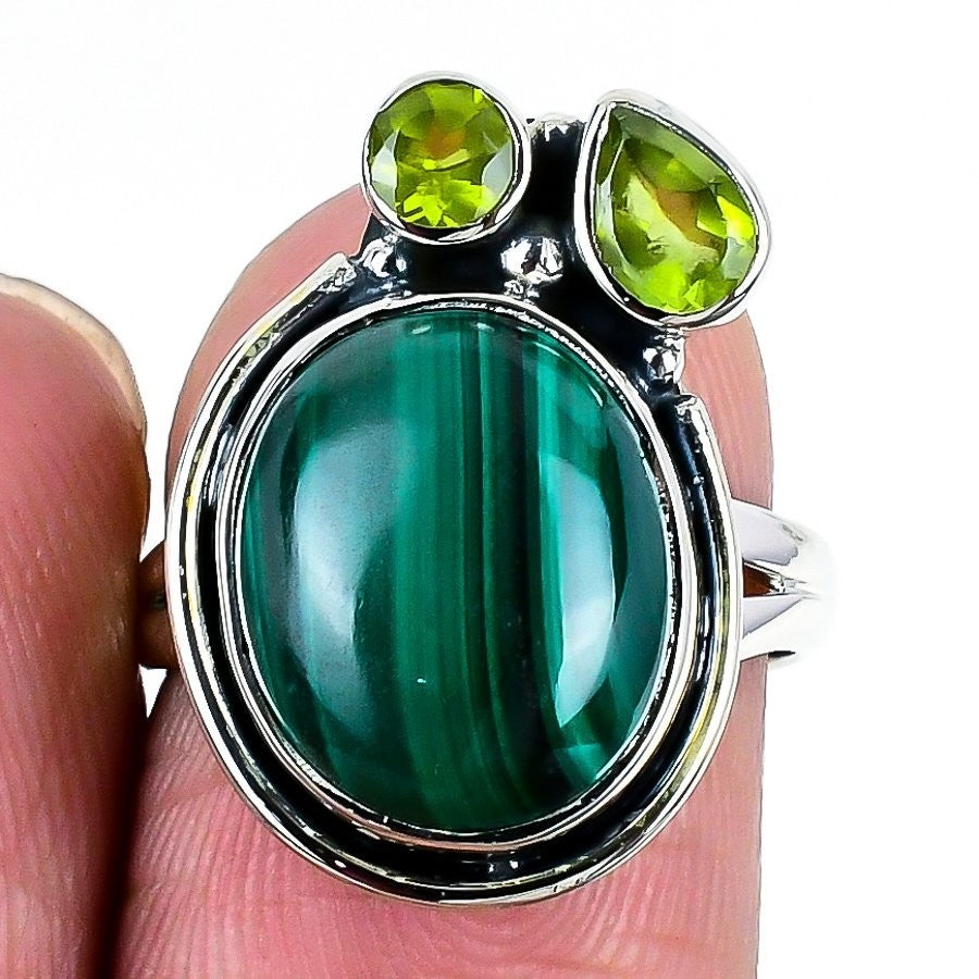 Natural Malachite Birthday New Statement Channel Set Ring Size 6.5 Solid Silver
