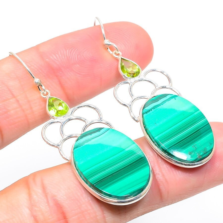 Elegant Natural Malachite Sterling Silver Boho Dangle Drop i
