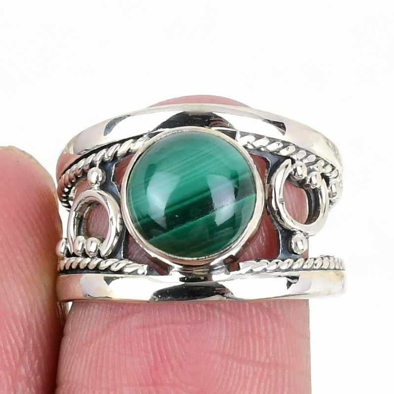 Natural Malachite Sterling Silver Wedding Wife Cluster Unique Trendy Ring Size 7