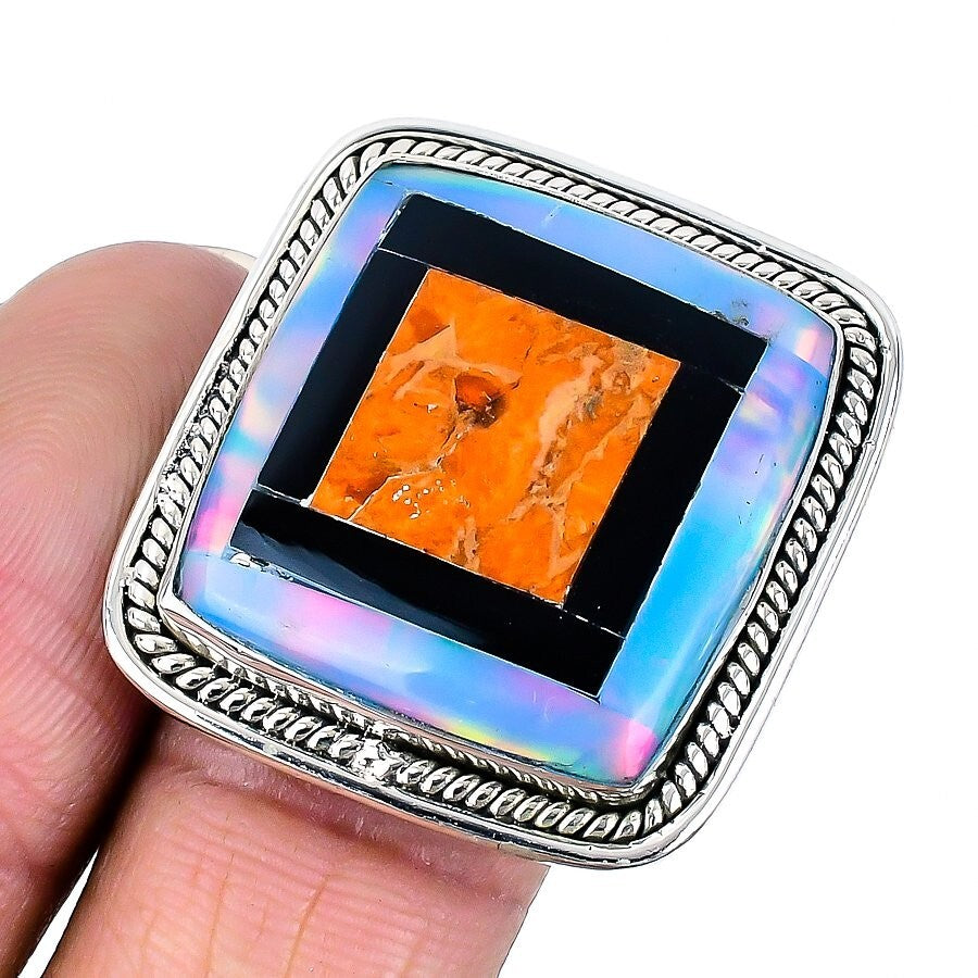 Natural Matrix Opal 925 Silver Birthday Statement Handmade Ring Jewelry Size 9.5