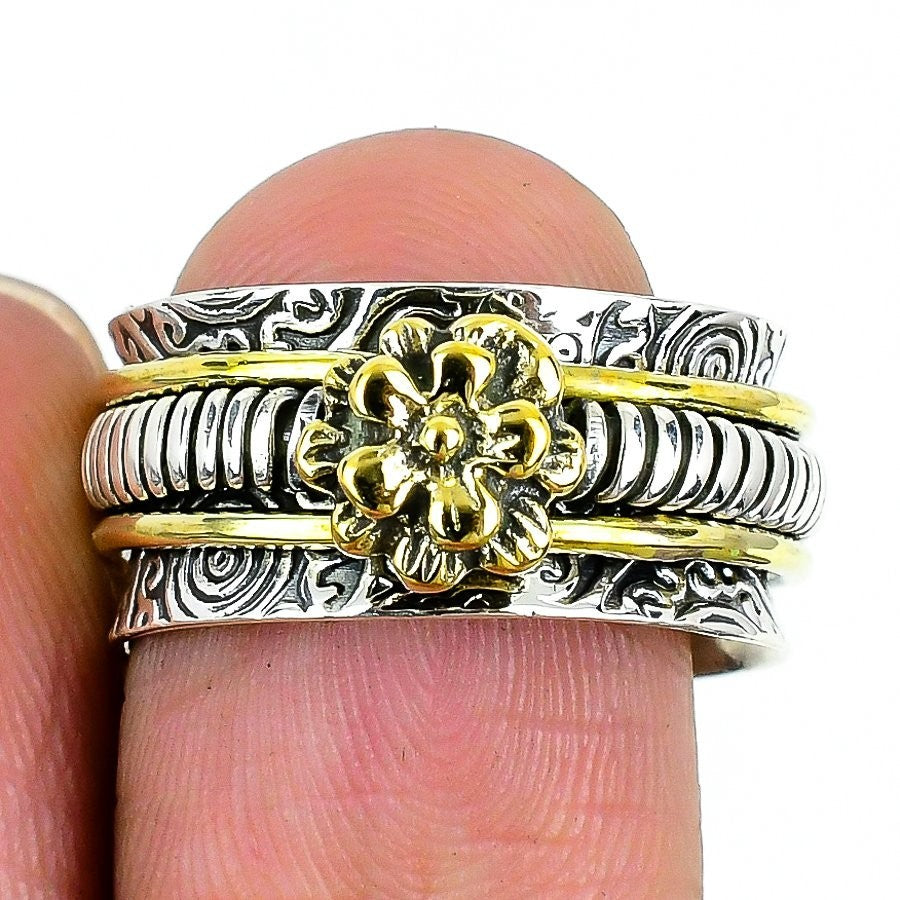 Natural Meditation Spinner 925 Sterling Silver Statement Wedding Ring Size 7.5