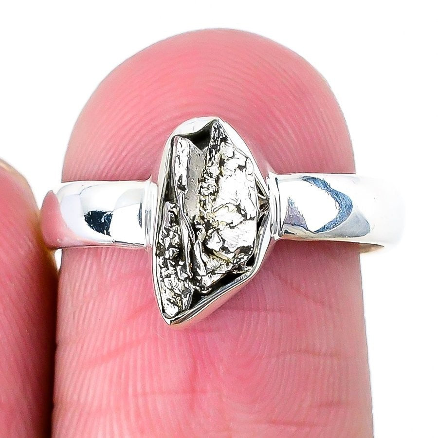 Natural Meteoroid 925 Solid Silver Wedding Cluster Ethnic Ring Jewelry Size 7