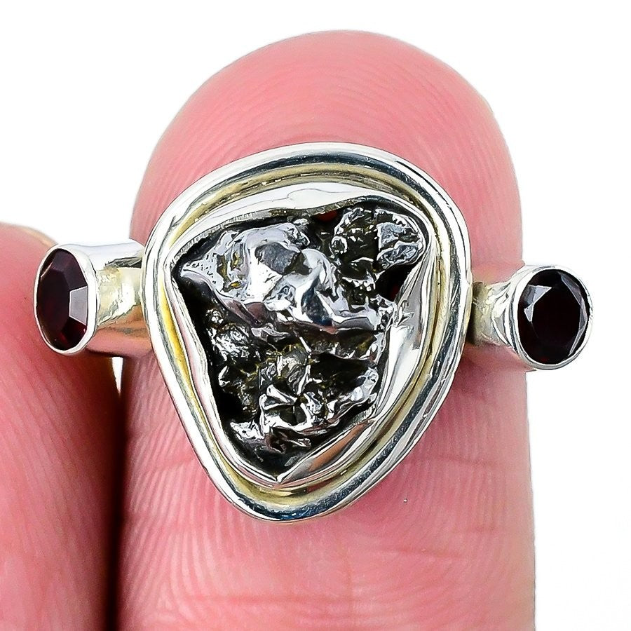 Natural Meteoroid Daughters Day Cluster Handcrafted New Ring Size 8 Solid Silver