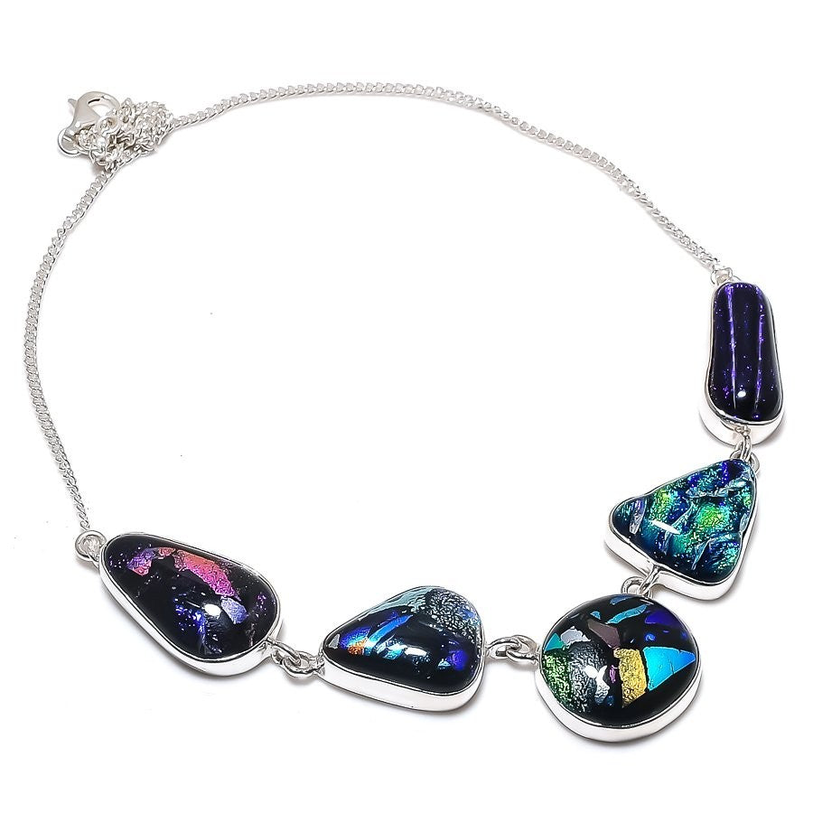 Natural Mexican Dichoric Glass Solid Sterling Silver Hook Chain Necklace Jewelry