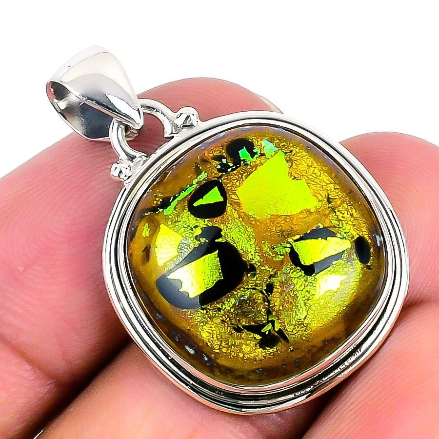 Natural Mexican Dico Glass 925 Silver Best Daughters Gift Wife Pendant Jewelry