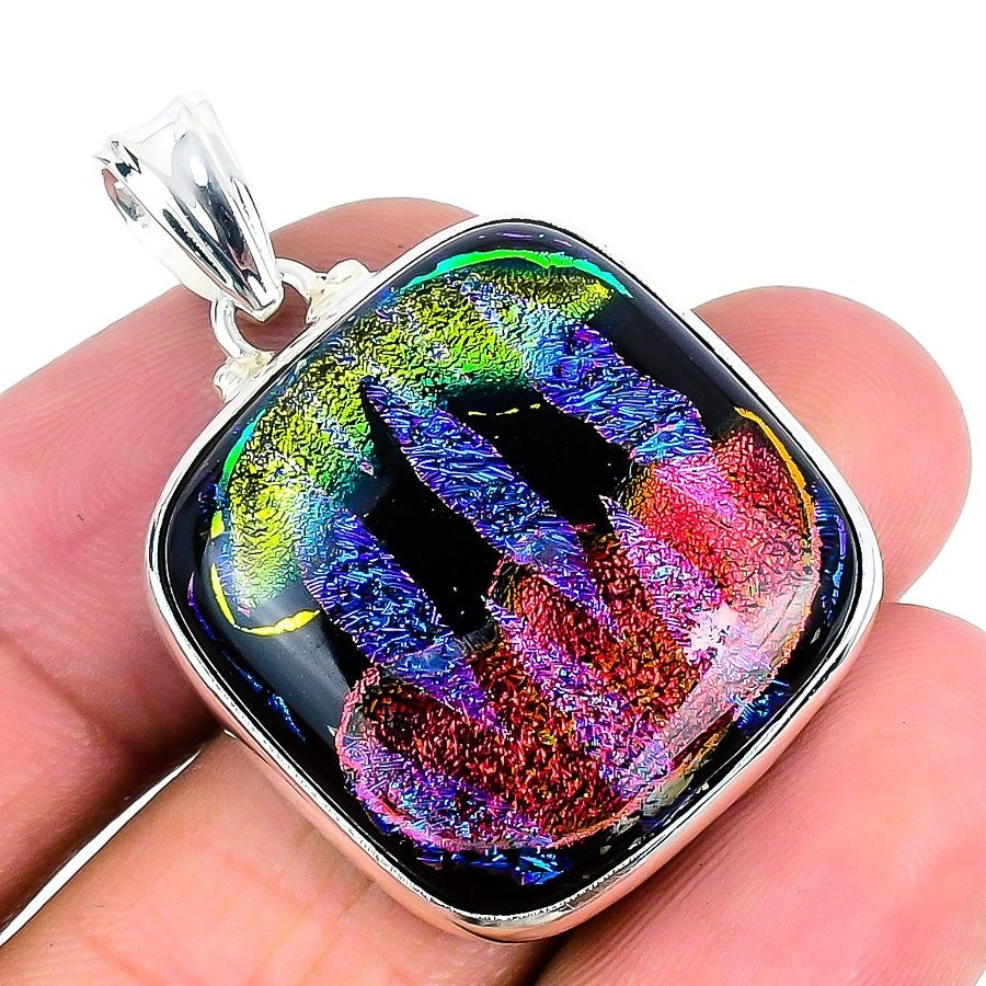 Natural Mexican Dico Glass 925 Silver Bezel Mother Daughter Gift Wedding Pendant