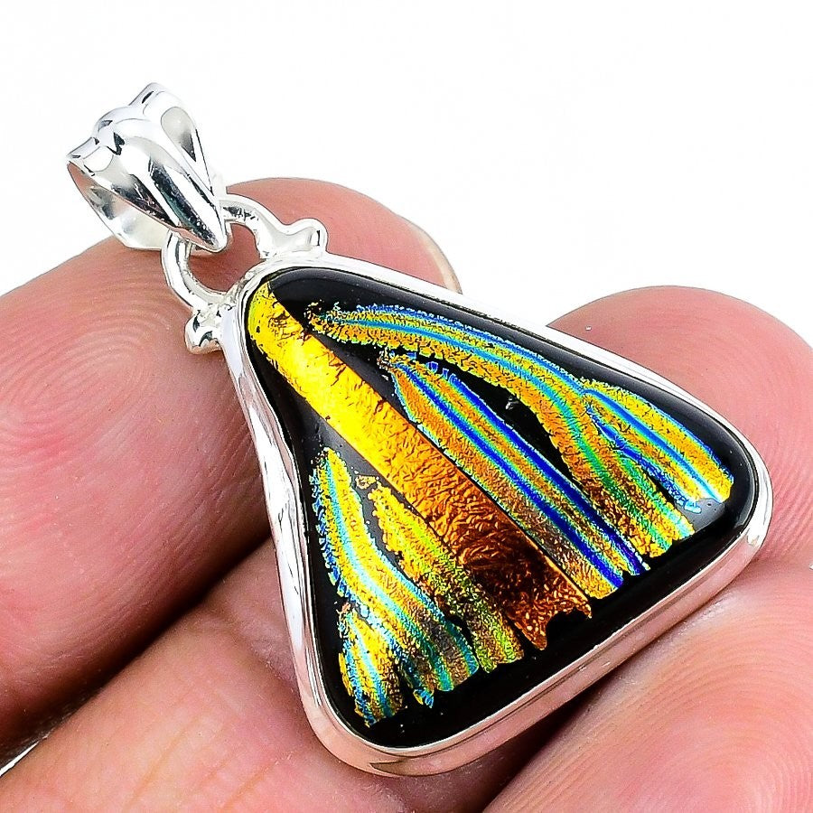 Natural Mexican Dico Glass 925 Silver Sisters Day Wedding Wife Pendant Jewelry