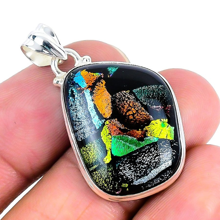 Natural Mexican Dico Glass 925 Solid Silver Best Daughters Gift Pendant Jewelry