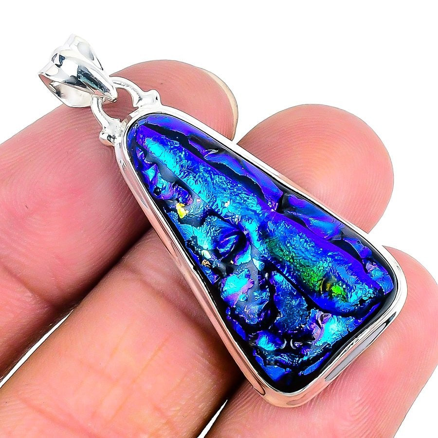 Natural Mexican Dico Glass 925 Solid Silver Bezel Ethnic Sister Birthday Pendant