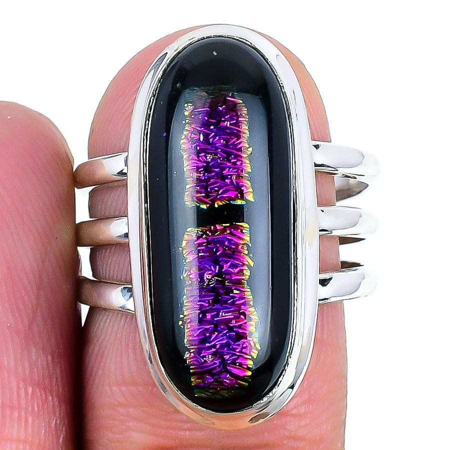 Natural Mexican Dico Glass 925 Solid Silver Wife Stackable Statement Ring US 8.5