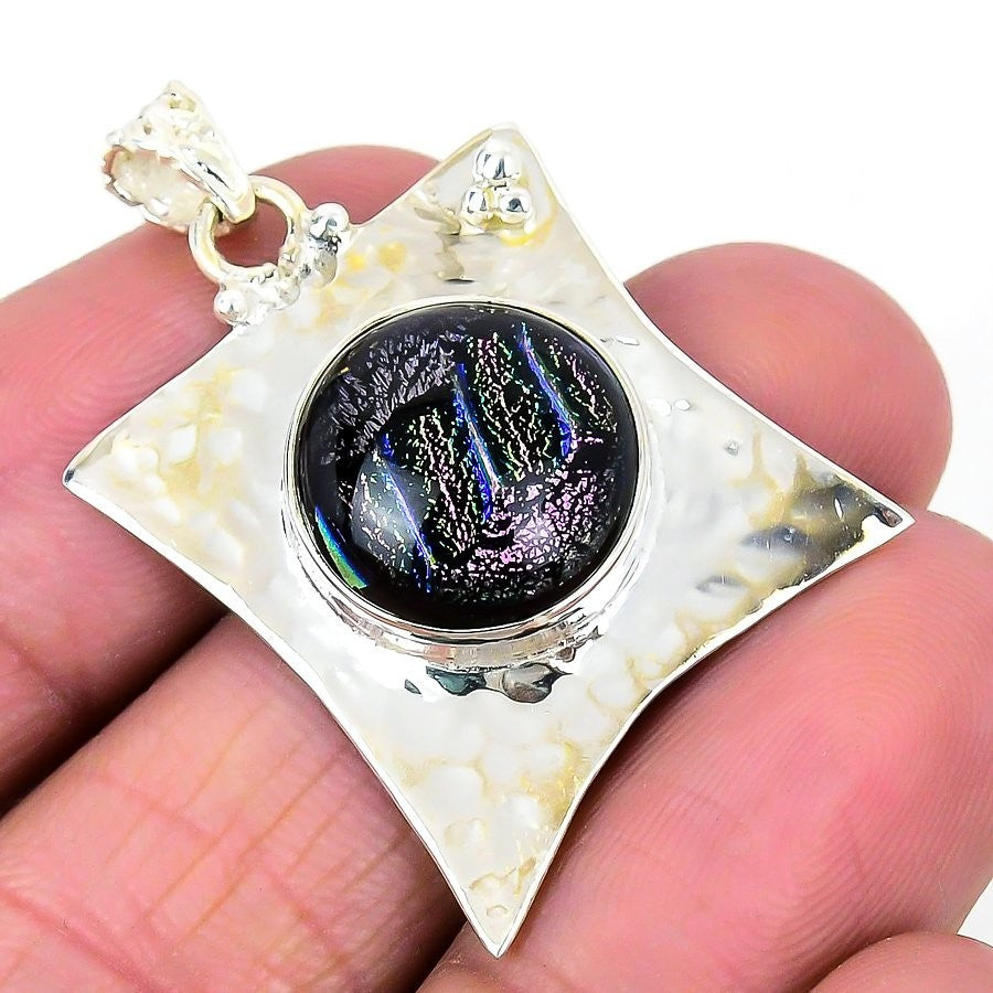 Natural Mexican Dico Glass 925 Solid Silver Wife Wedding Unique Pendant Jewelry
