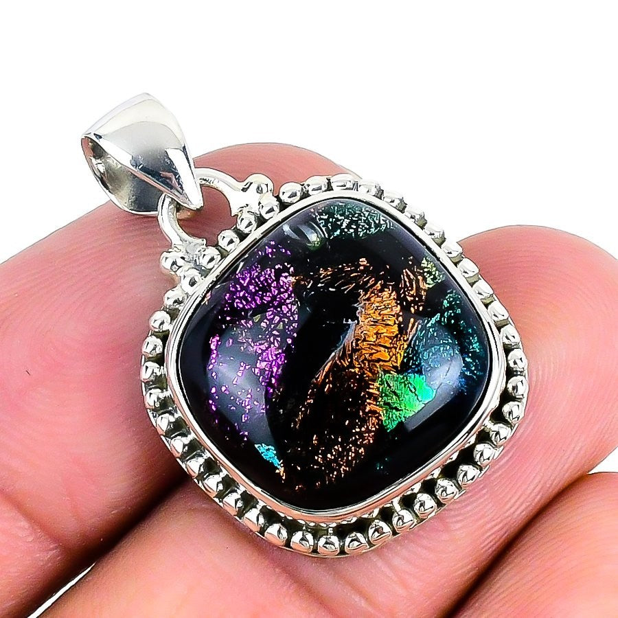 Natural Mexican Dico Glass Daughter Bezel Pendant Jewelry Solid Sterling Silver