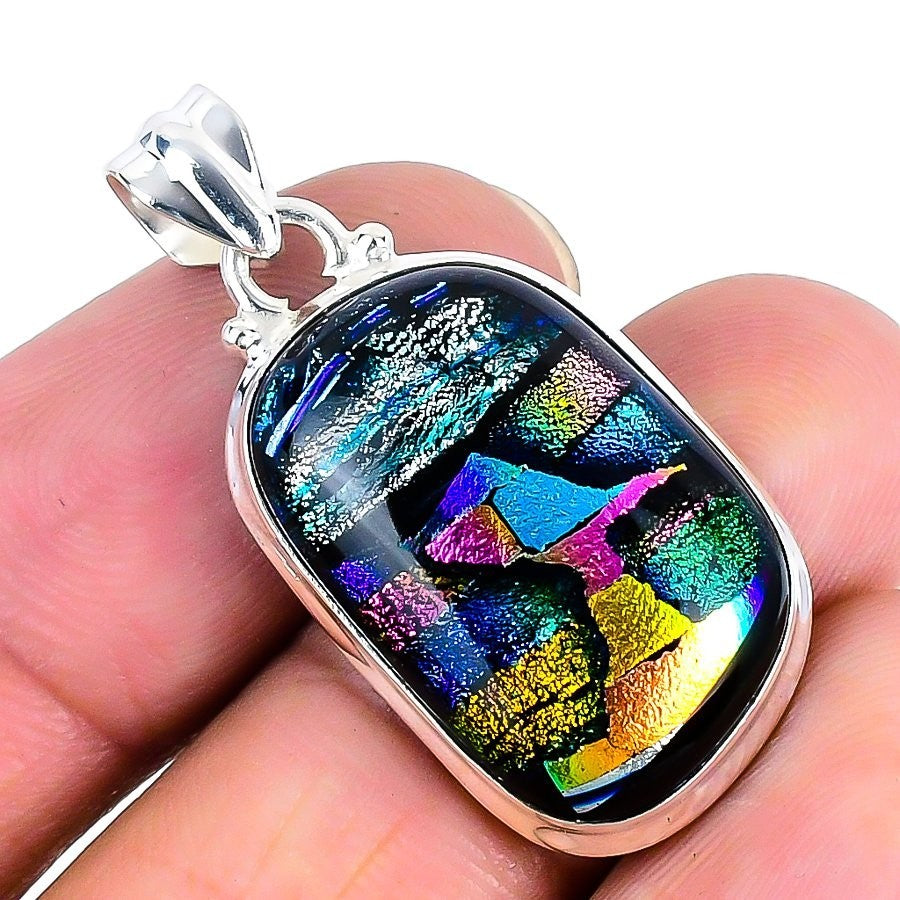 Natural Mexican Dico Glass Engagement Daughters Day Pendant Jewelry Solid Silver