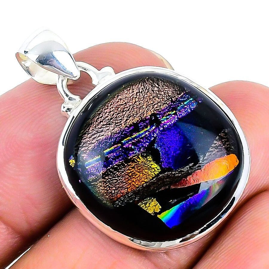 Natural Mexican Dico Glass Ethnic Bezel Daughter Handmade Pendant Solid Silver