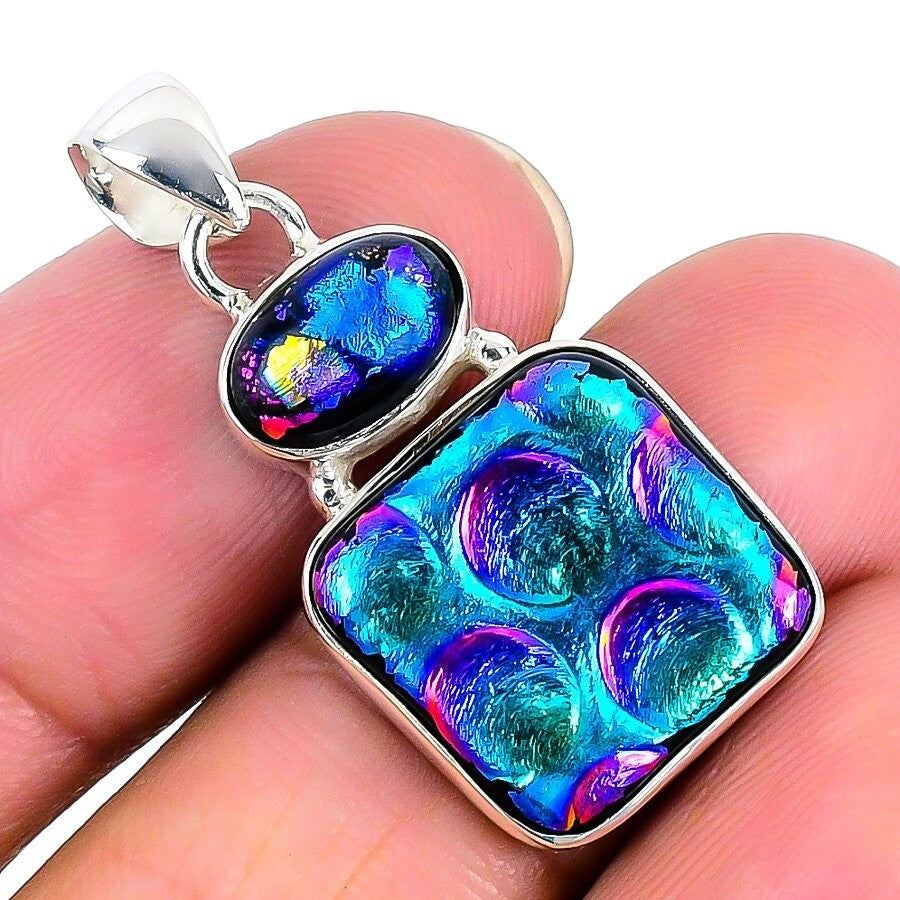 Natural Mexican Dico Glass Solid Sterling Silver Wife Artisan Bezel Boho Pendant