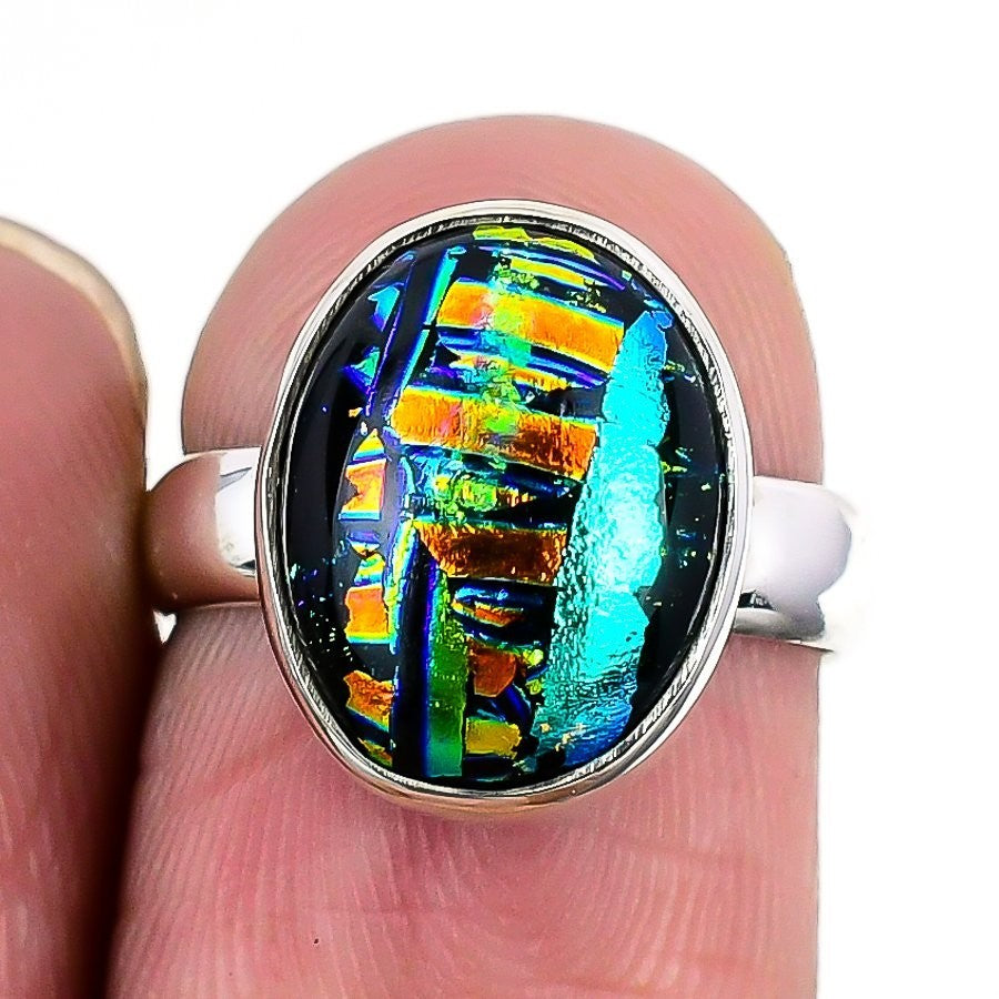 Natural Mexican Dico Glass Sterling Silver Statement Ethnic Ring Jewelry US 5.5