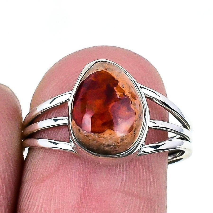 Natural Mexican Fire Opal Solid Sterling Silver Statement Wife Ring Jewelry US 8