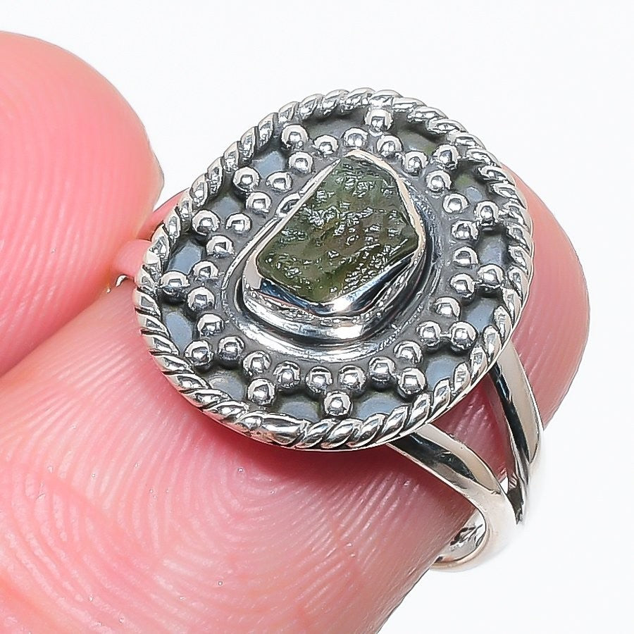 Natural Moldavite 925 Solid Silver Anniversary Statement New Ring Jewelry Size 7