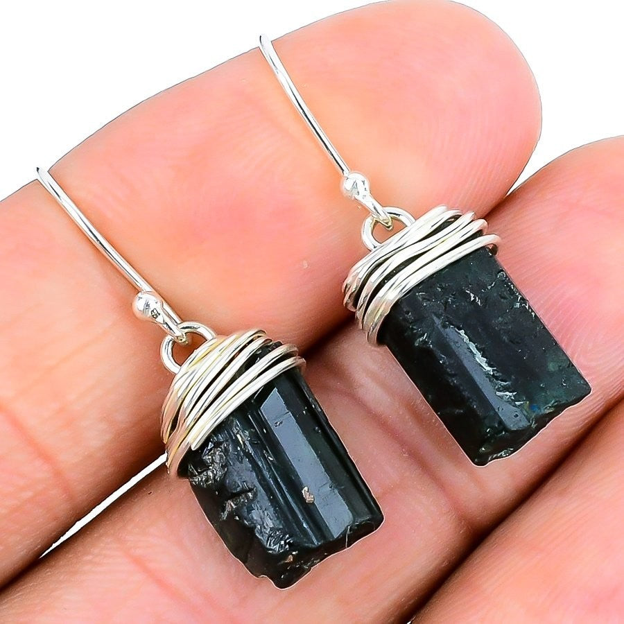 Natural Moldavite 925 Sterling Silver Dangle Drop Engagement Earrings Jewelry