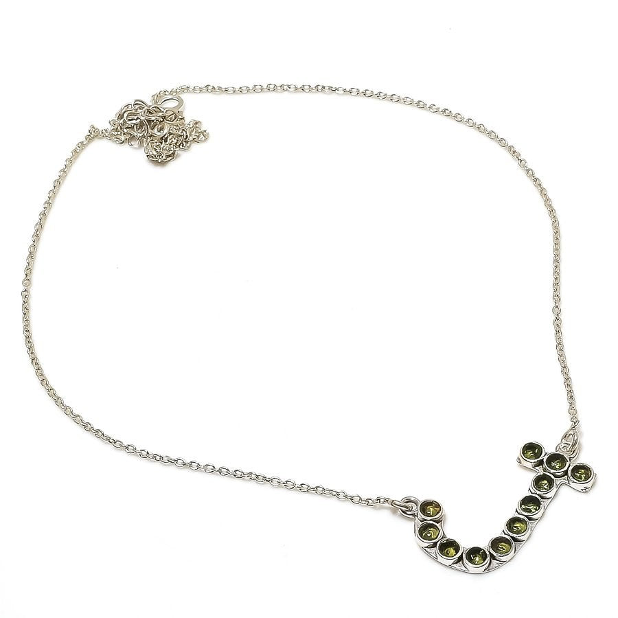 Natural Moldavite Faceted Solid Sterling Silver Wedding Chain Necklace Jewelry