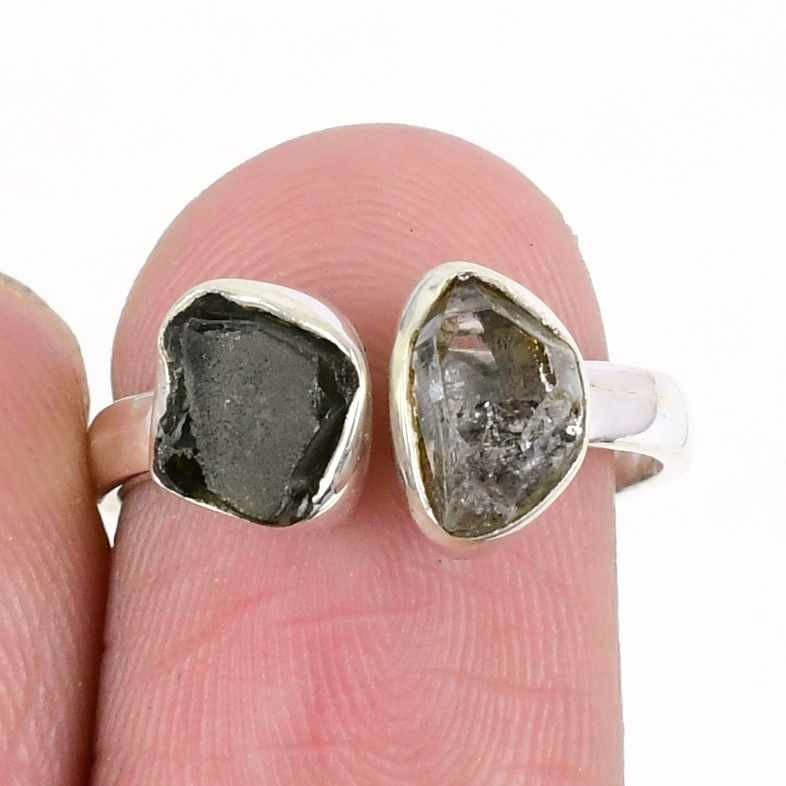 Natural Moldavite & herkimer Diamond Sterling Silver Cluster Wife Ring Jewelry