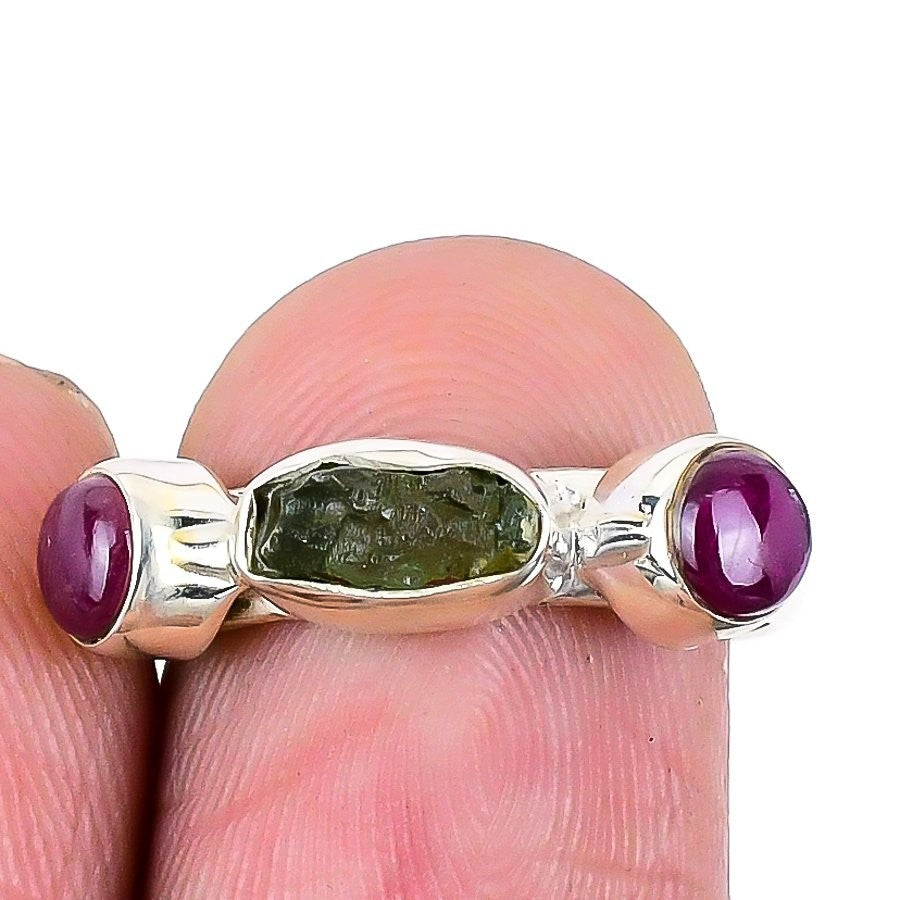 Natural Moldavite Quartz 925 Solid Silver Boho Statement Anniversary Ring Size 7