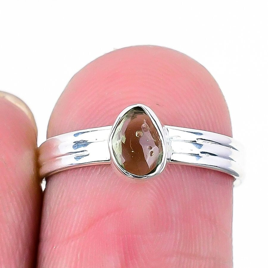 Natural Moldavite Solid Silver Mothers day Daughter Unique Cluster Ring Size 6