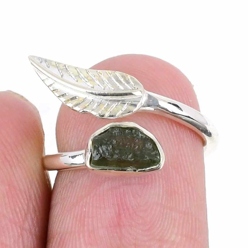 Natural Moldavite Sterling Silver Handmade Cluster Elegant Ring Jewelry Size 5.5