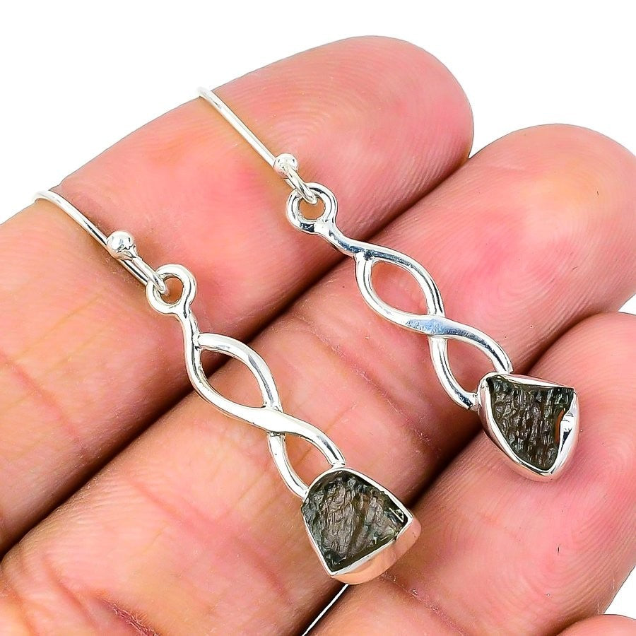 Elegant Natural Moldavite Sterling Silver Sister Hook Drop i