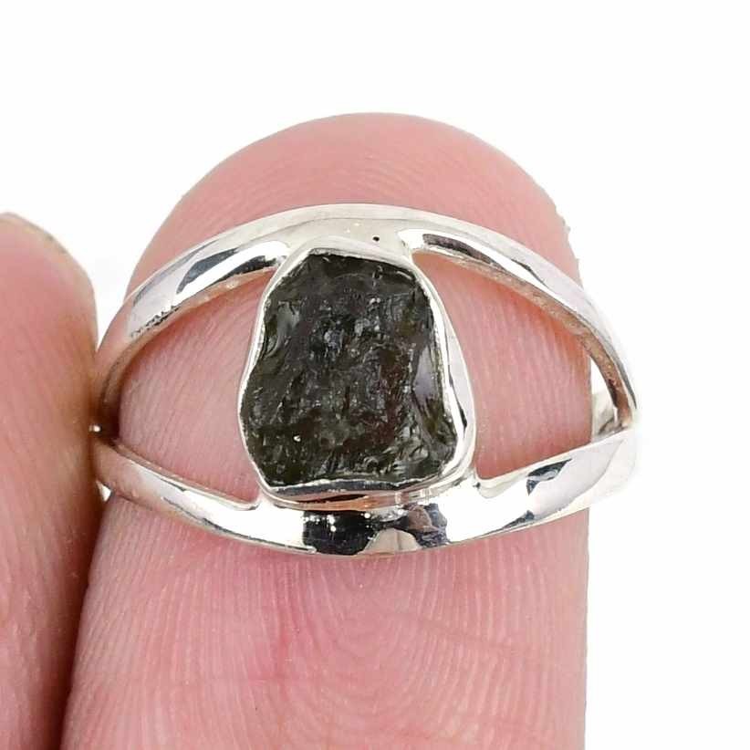 Natural Moldavite Sterling Silver Wife Cluster Daughters Day Ring Jewelry Size 6