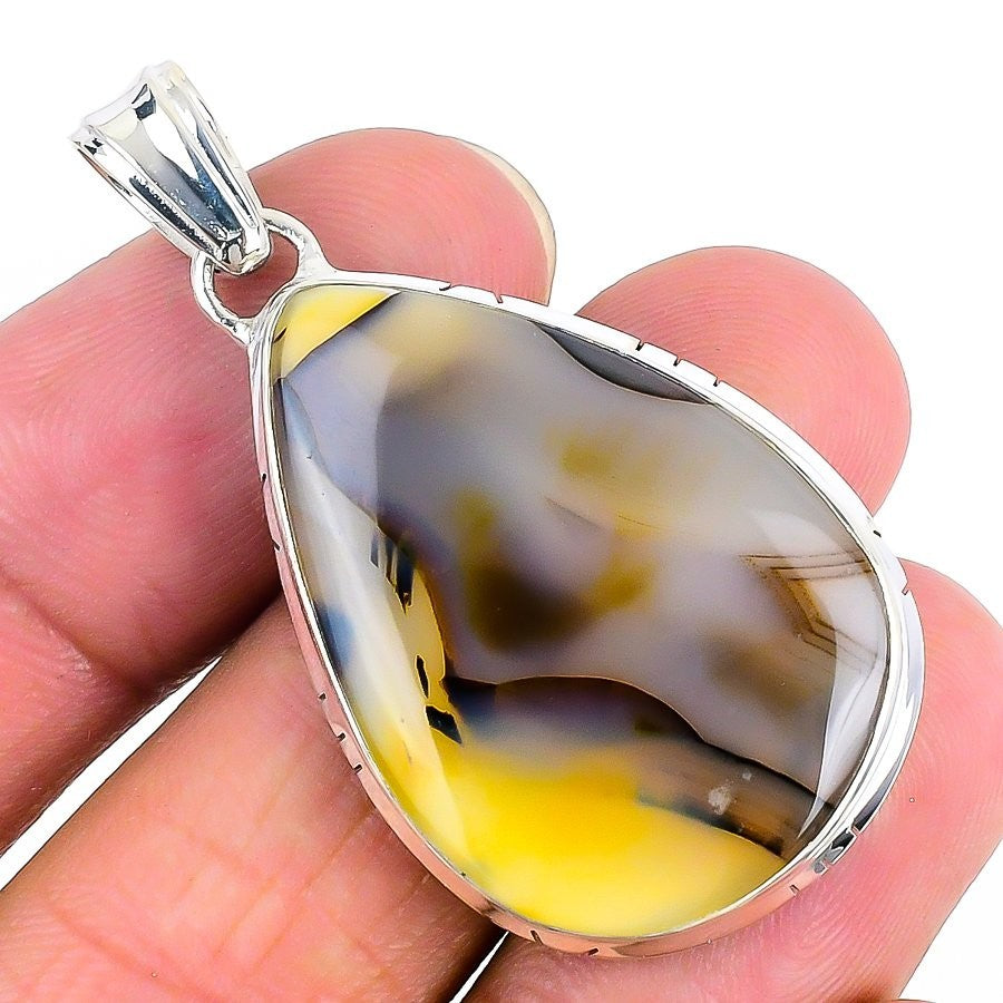 Natural Montana Agate Artisan Engagement Daughter Gift Pendant Sterling Silver