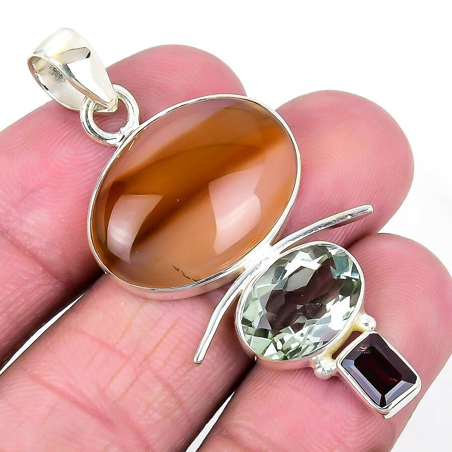 Natural Montana Agate Mother Boho Trendy Engagement Pendant 925 Sterling Silver