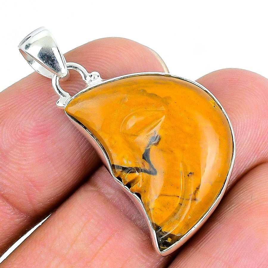 Natural Mookaite moonface 925 Sterling Silver Trendy Art Deco Pendant Jewelry